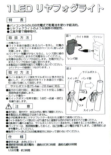 원본상품명: 自?車 ライト サイクルギア 1LEDリヤフォグライト レッド 84533