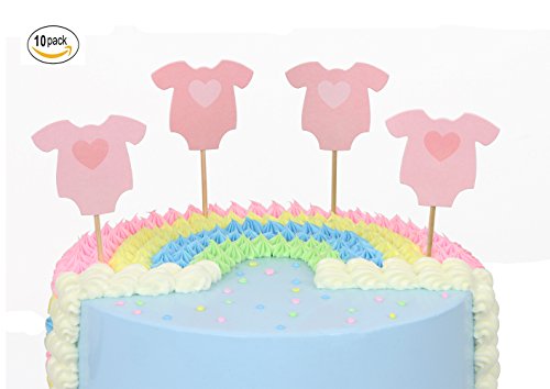 10 Pcs Dessert Muffin Cupcake Toppers for Baby Shower Birthday Party Decorations (Pink)