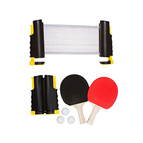 Studio : Red Cup Pong Publisher : Red Cup Pong Binding : Sports Product Description Anywhere Table Tennis Set by Trademark Innovations This versatile tabletop tennis set is perfect for both travel and home use. Easy to store, the set comes with 2 paddles and 3 pong balls. The net expands and contracts and attaches to any size table or surface. Play table tennis on any table our surface with our set! 0