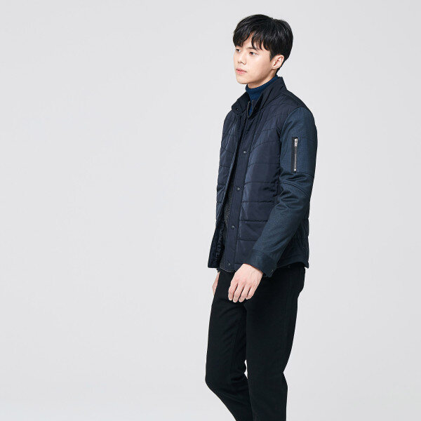 솔리드 컬러에 패딩 디테일을 포인트로 적용하여 감각적인 외관을 연출하는 남성 점퍼입니다. 가벼운 폴리 소재감으로 편안한 착장감을 전해주며, 하이넥 카라 디자인에 이중 여밈으로 밀착감을 높여줍니다. 소매 지퍼 디테일로 포인트를 주었으며 양사이드 포켓이 있어 간단한 소지품 수납이 가능합니다.