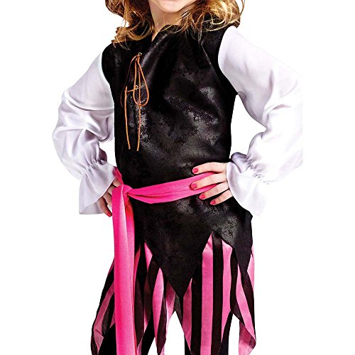 -. Brand : Fun World -. Color : Pink, White, Black -. Department : girls -. Feature : What's Included: Top with Sash Skirt Bandana Toddler Size -. Label : Fun World -. Manufacturer : Fun World -. PackageQuantity : 1 -. ProductGroup : Apparel -. ProductTypeName : BABY_COSTUME -. Publisher : Fun World -. Studio : Fun World -. Title : Caribbean Pirate Girl Toddler Costume