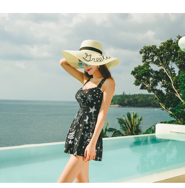 【関連キーワード】ホルターネック ワンピース水着 レディース 体型カバー 星柄 フレア モノトーン 大きいサイズ 送料無料