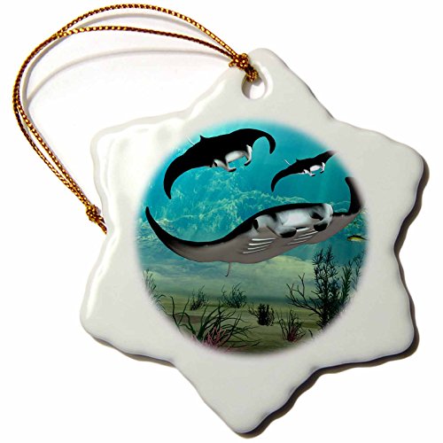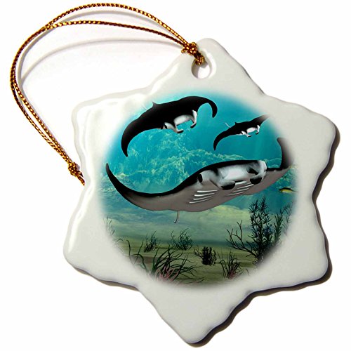 3dRose orn_62931_1 Manta Rays Swimming Snowflake Porcelain Ornament, 3-Inch