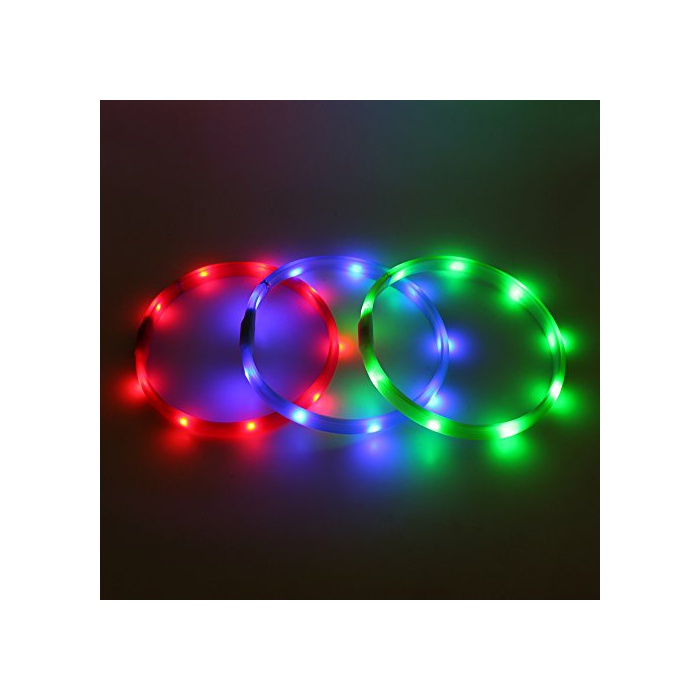 Lalawow LED 개 애완동물 목걸이 컬러 USB충전식 3개 모드 전방수야의 산책에서도 애완동물의 위치를 빛에 알립니다