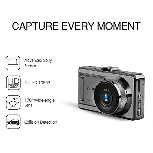 AKASO D2000 Car Dash Cam FHD 1080P 3 Inch LCD 170 Degree Wide Angle Dashboard Camera Recorder with G-Sensor, WDR, Loop Recording