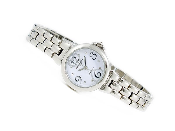 仕様 クオーツ、日常生活防水、4年電池、カラー:ホワイト(文字盤)、シルバー(ベルト)
