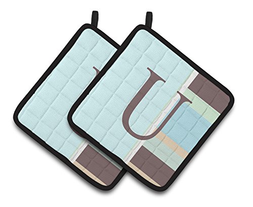 Caroline's Treasures Letter U Initial Monogram - Blue Stripes Pair of Pot Holders CJ1003-UPTHD, 7.5HX7.5W, Multicolor