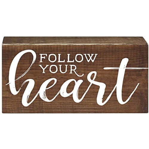 Follow Your Heart Inspirational Pine Block Quotes for Women and Men Gift ideas for Husband, Wife, Family, and Best Friends 2" x 6" x 12" (Dark Walnut)