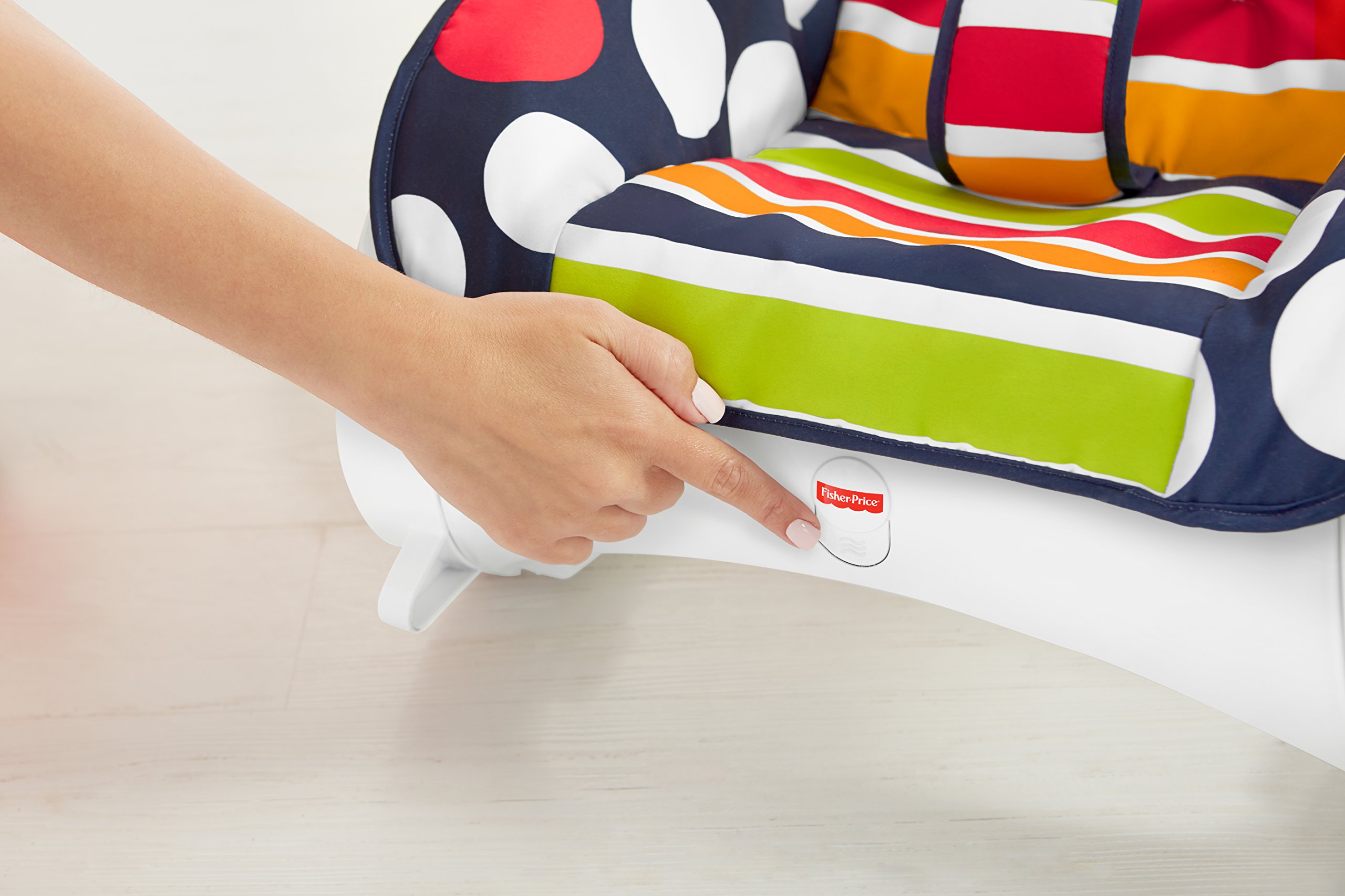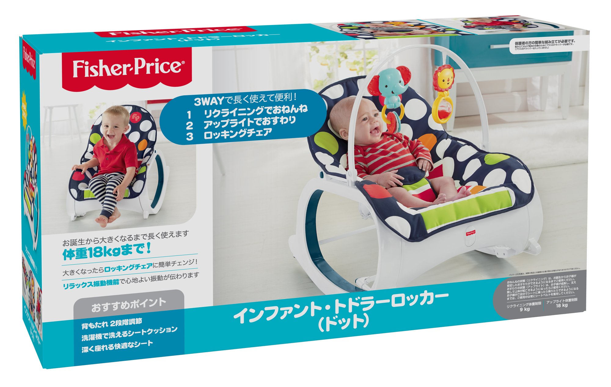 A stylish dot design appeared on the baby rack & rocking chair that can be used for a long time with 3 WAY as it grows! 1 When you were born, pulled out the kickstand to the reclining position.