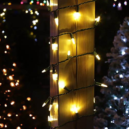 -. Feature : M5 LED lights - 50 warm white mini lights on green wire, end to end connectable up to 45 strings / 3-year warranty; M5 Faceted LED lights are virtually unbreakable, patented one-piece construction eliminates corrosion from moisture / LED Light Life 50,000 to 100,000 hours-Energy Efficiency / Full Wave Rectification Technology-No Flickering;If a Bulb Burns Out the Rest Remain Lit, Cool to Touch / This LED Mini lights perfect for Christmas Tree Lights, Outdoor Christmas Lights, Indoor Christmas Lights, Christmas String Lights, Indoor String Lights, and String Lights for Bedroom, wedding, party, Garden, Patio, any Holiday Decorations!