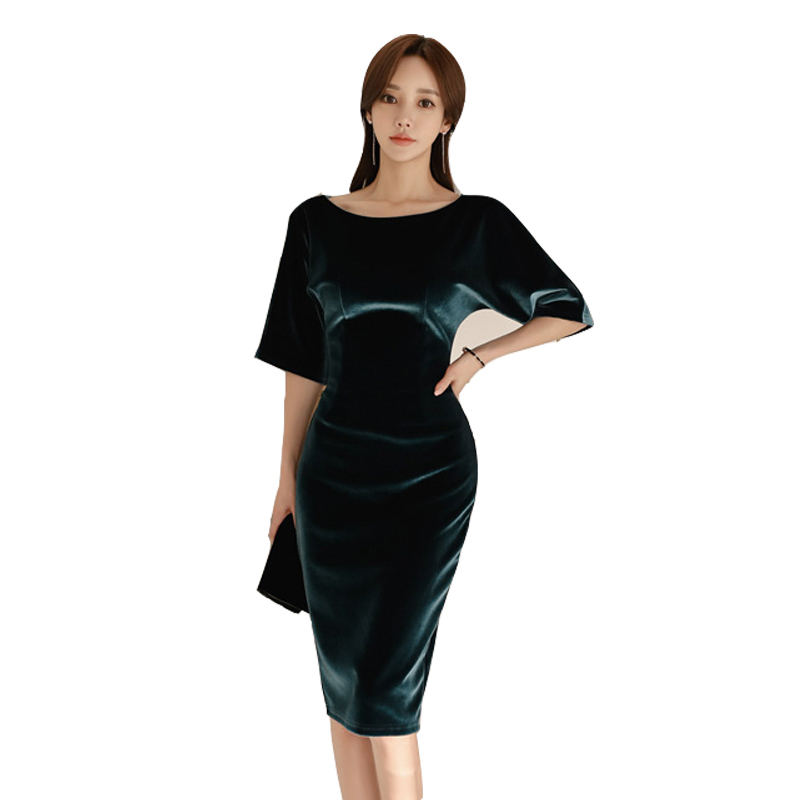 ワンピース ドレス 五分袖 ラウンドネック 上品 清楚 ひざ下丈 タイトワンピース 卒業式