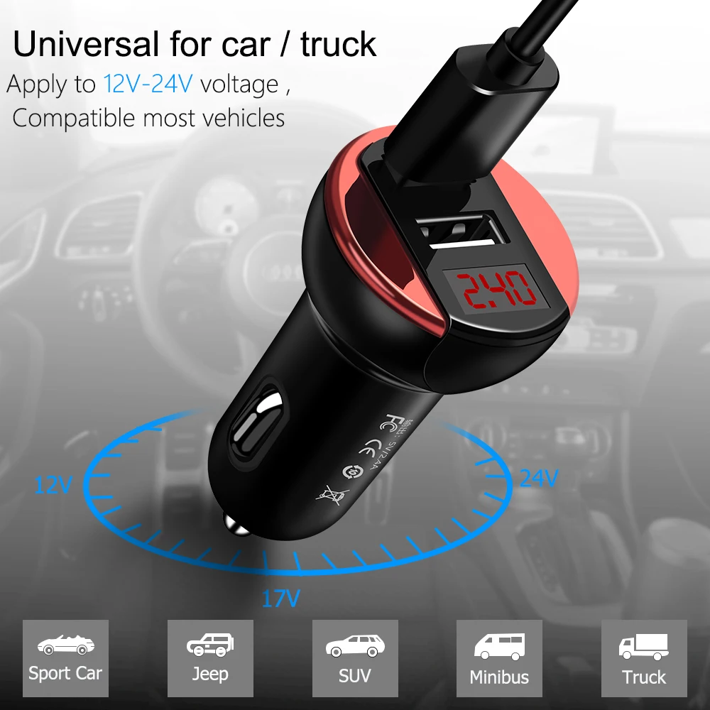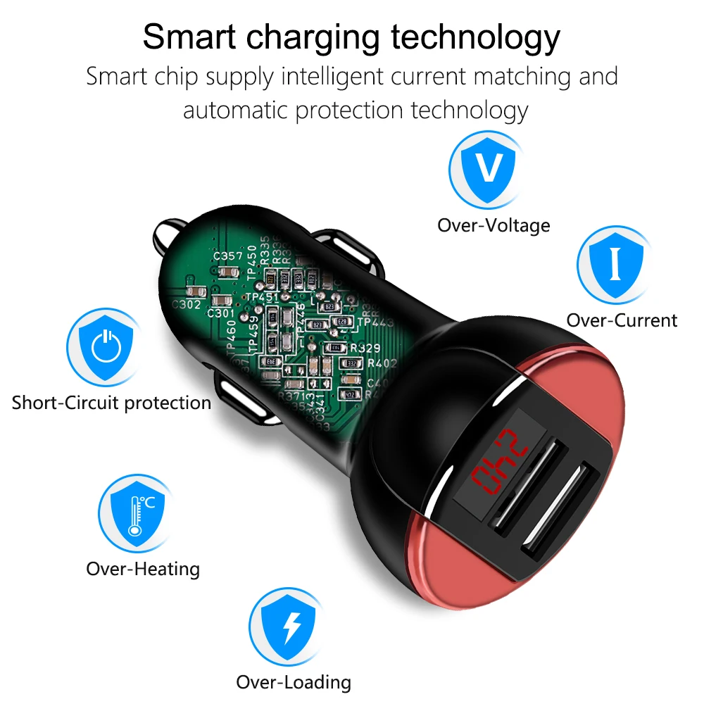 Feature:Smart Digital + LED Display + Car Charger