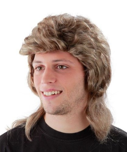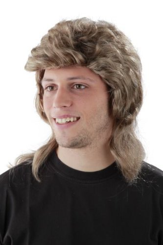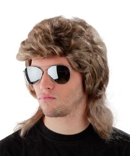 Foxxeo 50004 | 3er Kombi-Set !!!! 80er Jahre Vokuhila Perucke + verspiegelte Pilotenbrille + Kette