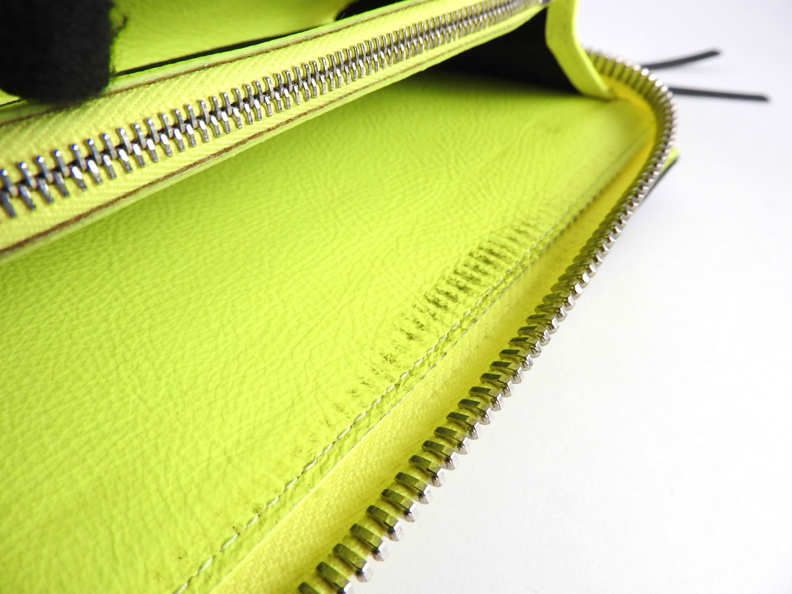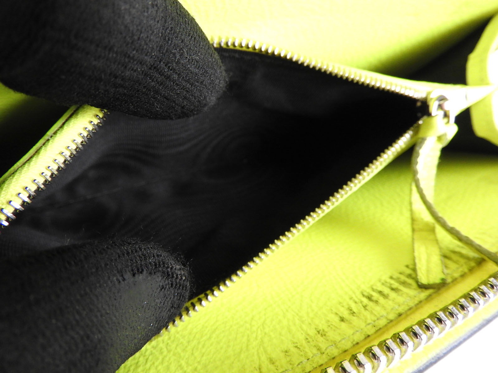 | Inside Pockets | Zip Coin purse: Barely used feeling. Good condition. The other pockets: Barely used feeling. Good condition except for some stains inside the zip pocket as No.10 & 11 photos. |