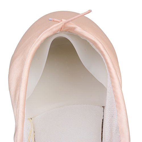 Girls Womens Dance Shoe Pink Satin Ballet Pointe Shoes with Ribbon and Toe Pads