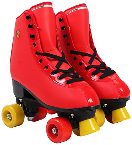 Studio : Dakott LLC Publisher : Dakott LLC Binding : Sports Product Description Ferrari amazing classic roller skates classic skates with leather-look vinyl upper and secure lacing system. Ferrari 58mm high rebound urethane wheels for better shock absorption and durability, precision bearings for smooth rolling. Ferrari unique material used for preparing boots, shoes car seats. 0