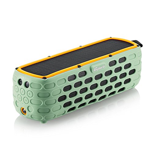 -. Feature : [SOLAR-CHARGED TECH] With a high power monocrystalline silicon solar panel, the speaker could be charging and playing the music continuously outdoors. 10 minutes charge by solar panel could last 30 munutes of music playing.(Comment : the data is based on the field test,it may have any differences under different conditions, such as different place,season and sunlight intensity in actual using) / [LONG BATTERY LIFE] Hi-capacity lithium battery and built-in smart battery management system,long battery life, can play music for more than 30 hours after a full charge. It is more convenient for you to enjoy outdoor activities such as barbecue, fishing, camping, hiking or biking and so on. / [SUPERIOR BASS SOUND] Amplifiers and 5W*2 high-fidelity speakers were installed in the Bluetooth speakers, it is adopting advanced APT-X chip HD lossless audio technology and dual driver, solar bluetooth speaker have surP.R.Isingly original sound and powerful bass respond / [SHOCKPROOF AND SPLASHPROOF] Silicone rubber cover and advanced solar panel mean you don't have to afraid of dropping it 6.5 feet in height and breaking it. IPX5 rating speaker can resist gentle water spray & splash but cannot be partially or fully submerged. / [BLUETOOTH 4.0 TECHNOLOGY] Compatible with all Bluetooth-enabled devices and non-bluetooth devices with included 3.5mm audio mini jack cable, such as iPhone, iPad, iPod, Mac, Smartphones, Tablets, mp3 etc. Built-in mic for hands-free calls.