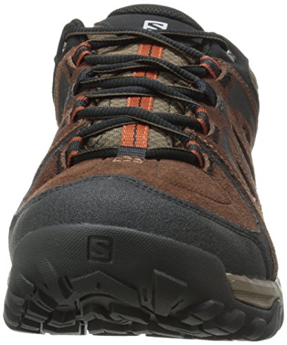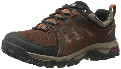 Studio : Salomon Footwear Publisher : Salomon Footwear Binding : Apparel Product Description Ready for any adventure in any weather Salomon Evasion CS WP Waterproof Hiking Shoes for Men deliver protective comfort out on the trail. Waterproof split suede leather and water resistant textile uppers work with the shoes ClimaShield waterproof booties to keep feet dry supported comfortable and protected. Protective mud guard heel cap and synthetic toe cap provide an additional shield from trail-level hazards. Textile linings work with the Evasions die cut OrthoLite sockliners to surround feet in comfort as you work your way up the trail. Injected EVA midsoles absorb the abuse of rough trails while the non-marking Contragrip outsoles give you traction over the most unforgiving terrain. Gusseted tongue. Imported.Features. Average weight - 14.11 oz.. Color - Dark Brown LeatherBurro. Size - 10 Medium 0