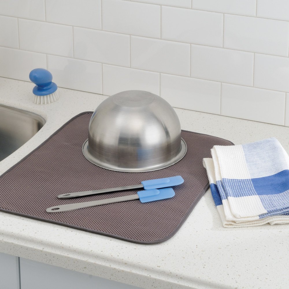 InterDesign iDry Large Kitchen Countertop Absorbent Dish Drying Mat Mocha/Ivory