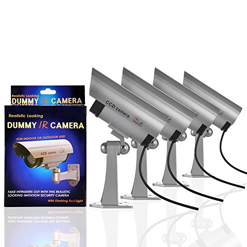 Dummy Security Camera, CCTV Removable Plastics Suit for Indoor/Outdoor Occasion 4 pack Sliver