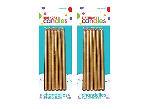2 Set of 12 Amscan Tall Gold Birthday 1/4in x 5in Wax Candles bundled by Maven Gifts