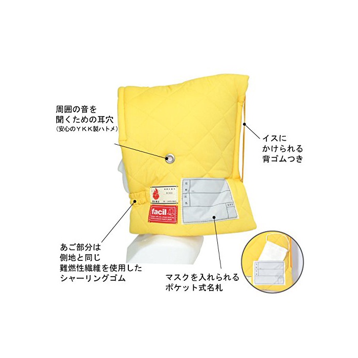 Facil 《후시루》 방재 대책 유아용 프리미엄 방재 두건 옐로우 8065