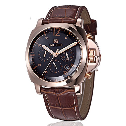 -. Title : YISUYA MegirメンズLuxury Watchメンズクロノグラフスポーツウォッチ純正レザーメンズクォーツ腕時計