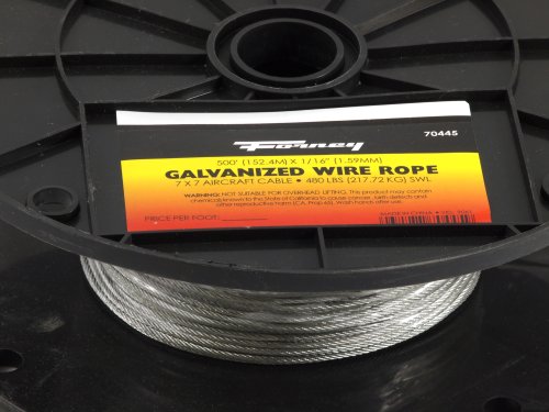 Forney 70445 Wire Rope, Galvanized Aircraft Cable, 500-Feet-by-1/16-Inch