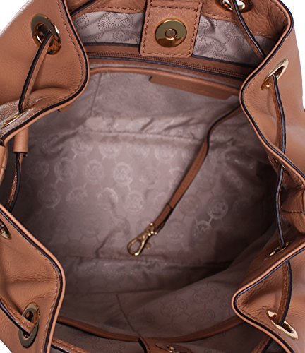 -. Brand : Michael Kors -. Department : womens -. Feature : Leather with gold-tone hardware / 11.5 X 11 X 4" / Adjustable strap with 12"-14" drop / Interior: One zip pocket, three open pockets, one cell phone pocket, one key fob / Hanging logo charm -. Model : Jules Large Drawstring Shoulder -. ProductGroup : Shoes -. ProductTypeName : HANDBAG -. Title : MICHAEL Michael Kors Jules Large Drawstring Shoulder Bag
