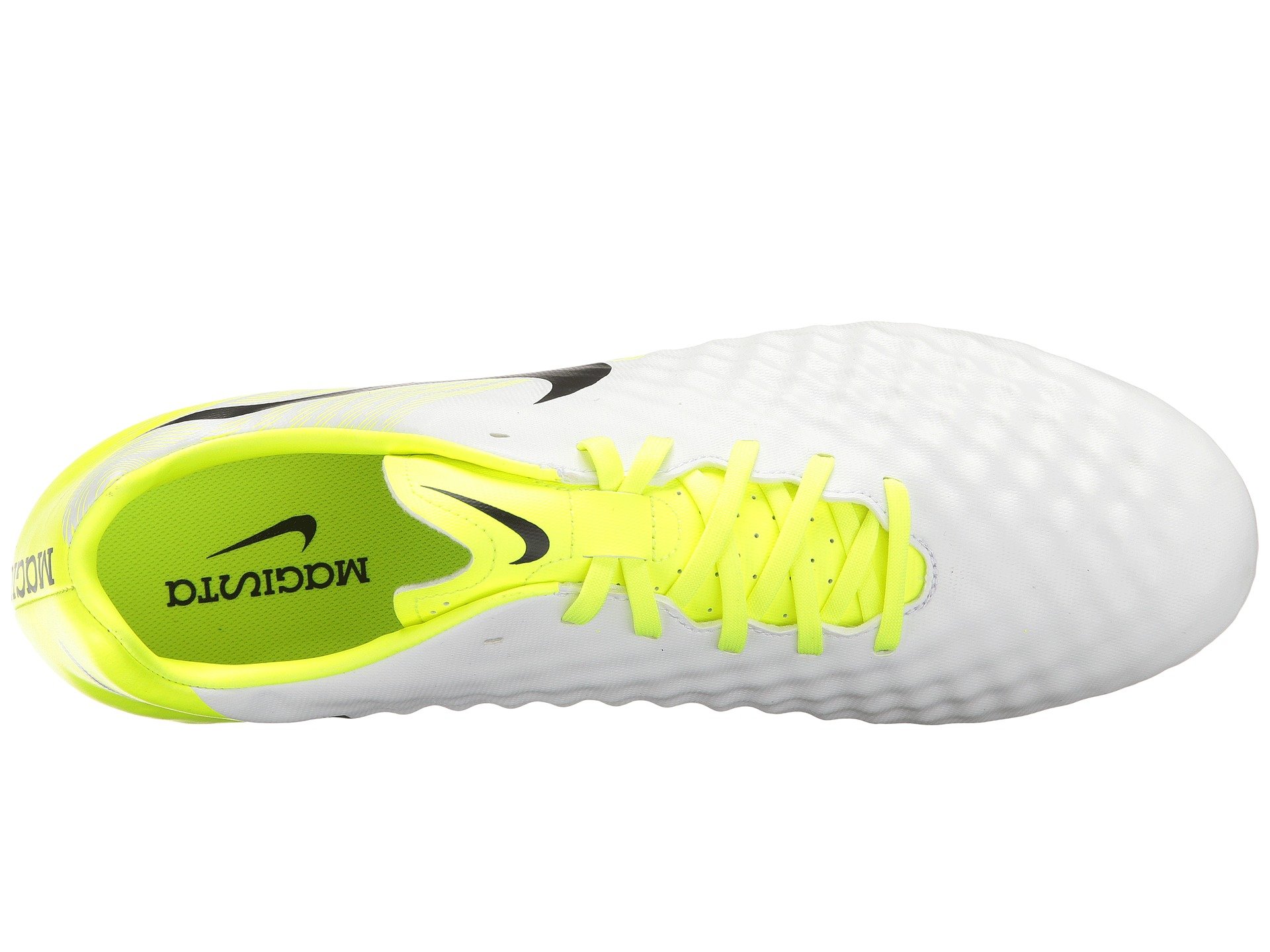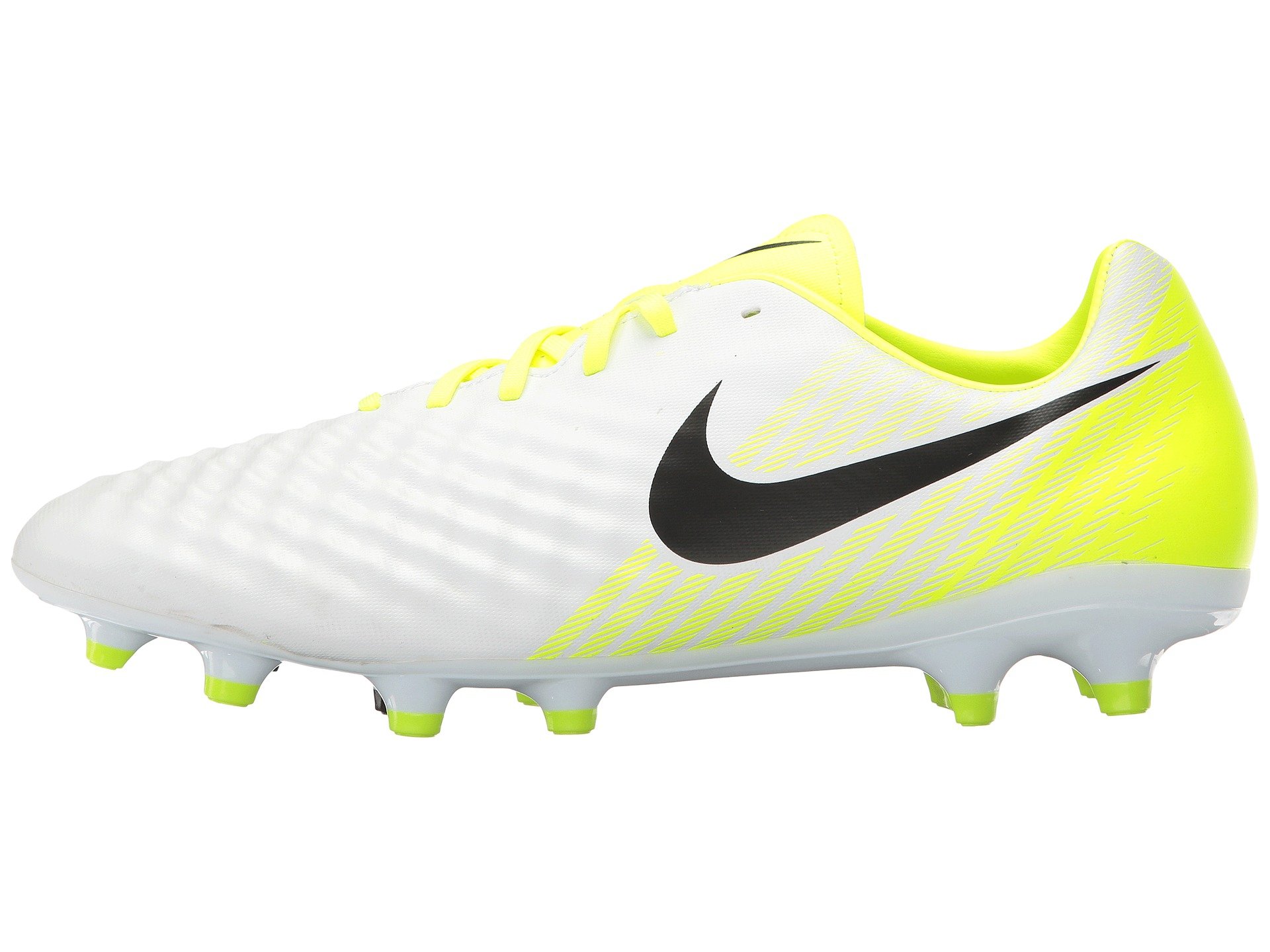 | Product Information SKU: #8716114Magnify your playmaking moves in the Nike? Magista Onda II FG soccer cleat!Synthetic leather upper provides enhanced ball control. Allover texture heightens ball touch.Lace-up closure. Asymmetrical lacing for better ball control. Thin comfort tongue.Lightly padded heel cup.Internal heel counter cups the foot and keeps it locked into place.Smooth textile lining. Perforated sockliner with top cloth supplies low-profile cushioning. Firm-ground (FG) cleats are specifically designed for use on short-grass fields that may be slightly wet, but rarely muddy.Imported. Product measurements were taken using size 10, width D - Medium. Please note that measurements may vary by size.Weight of footwear is based on a single item, not a pair.Measurements: Weight: 8 oz |