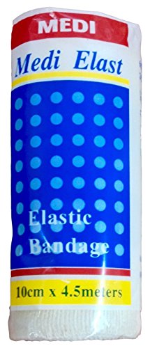 -. Feature : Medi Elast Elastic Bandage for injured joints / swollen limbs. / Size: 10cm / 4" wide, 4.5 meters / 15 feet long. / Applications: treatment of orthopedic, sports injuries. A must-have in first aid kits at home or outdoors. / Made of 65% cotton and 35% polyammide. Integrated metal clips allow easy closure. / Reusable, CE approved,