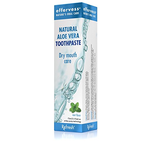 -. Binding : Misc. -. Brand : Effervess -. EAN : 0799493868975 -. Feature : Natural Aloe Vera Dry Mouth Care contains Xylitol Developed by a Dentist / Contains Calcium and Xylitol to Help Strengthen Enamel and Reduce Sensitivity / No Hydrated Silica or Baking Soda, No SLS,No harsh chemicals / Aloe Vera is an Ancient Plant known for Healing and Antibacterial and Antifungal / Developed for Dry Mouth - Loved by Everyone that wants better check ups and a Healthy Mouth Naturally -. IsAdultProduct : 0 -. Label : Effervess -. Manufacturer : Effervess -. MPN : B017OILVJO -. PackageQuantity : 1 -. PartNumber : B017OILVJO -. ProductGroup : Health and Beauty -. ProductTypeName : BEAUTY -. Publisher : Effervess -. Studio : Effervess -. Title : Effervess Rx Refresh Natural Aloe Vera Fluoride Free Toothpaste - Dry Mouth Care - Naturally Soothing & Moisturizing - Freshens Breath & Fights Cavities - Satisfaction Guaranteed -. UPC : 799493868975