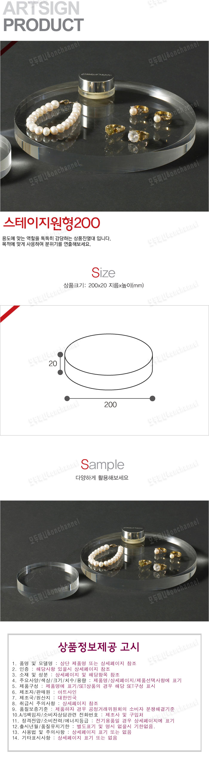 - 품명 및 모델명스테이지 원형받침대(200x20mm)