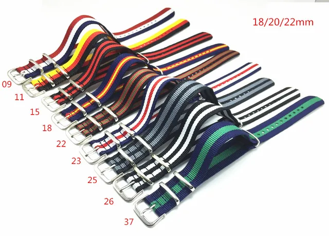 [해외]1 개 Carty 나일론 Mutliple 색상 제임스 본드 18 20 22 미리메터 스트랩 손목 남성 여성 스포츠 시계