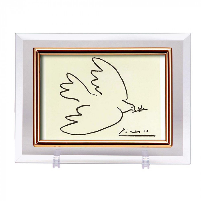 | ピカソが平和への願いを込めて描いた作品を透明感美しいガラスフレームにセットしました。フォトフレームはハガキサイズに対応しているので、PCからプリントした写真紙などにもご使用いただけます。 |