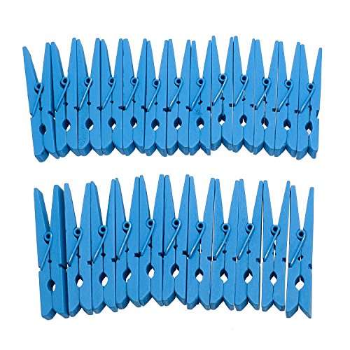 Derker Wood Craft Clothespins ,Bright Colored Clothes Pegs Pins - 24 Piece (2.9") (Blue)