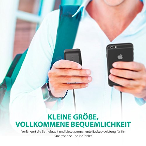 Hanflachengrosse Power Bar: Schlank und handlich, nur 116 Gramm jedoch mit genug Energie ausgestattet, um Ihr iPhone 7 2 Mal, iPhone 6s 3 Mal oder Ihr Galaxy S7 2 Mal zu laden, eine kompakt Stromversorgung fur Ihre mobilen Gerate. (Achtung: die Powerbank kann das Tablet nicht aufladen)
