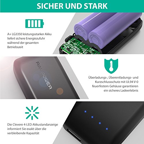 Schneller 2A Eingang: Ladt das Ladegerat ultraschnell in weniger als 3 Stunden wieder komplett auf (via 5V/2A AC Lader)