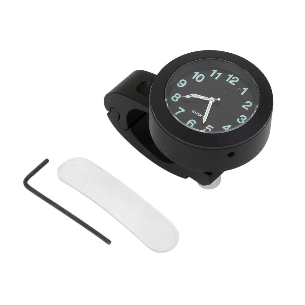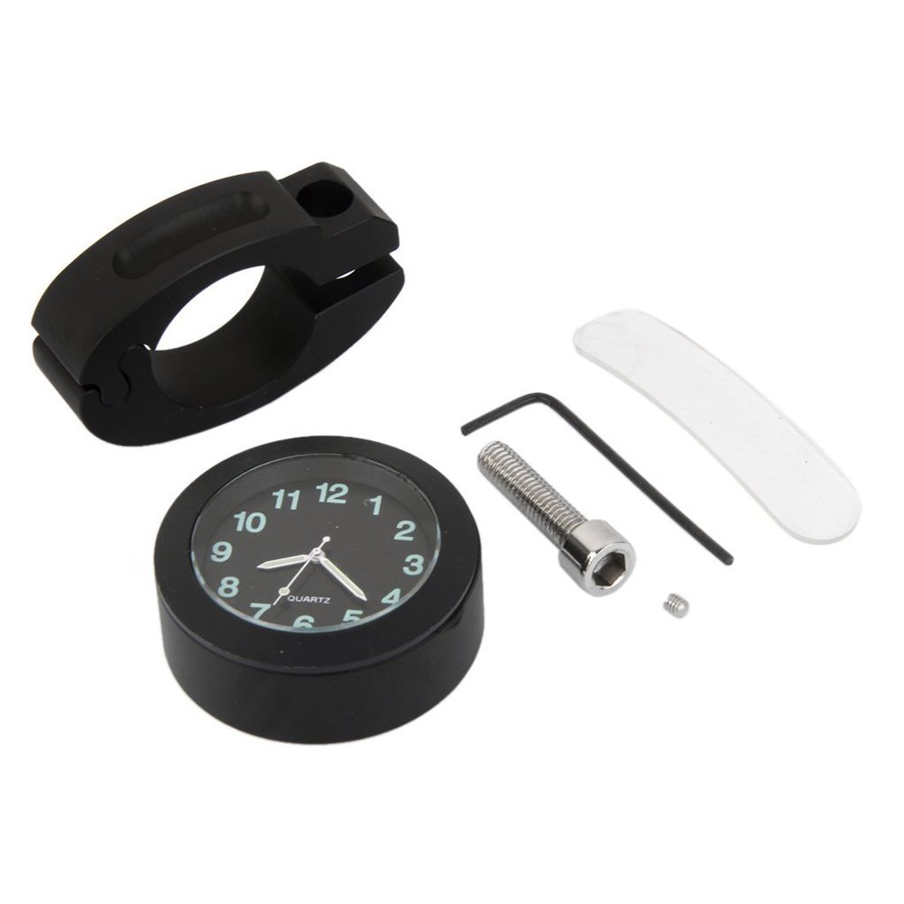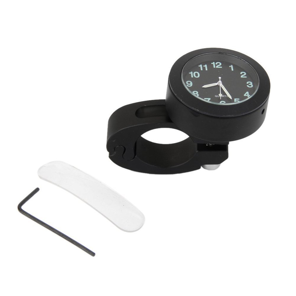1 * 7/8 inch waterproof bike motorcycle steering wheel bar dial glow watch clock (black)