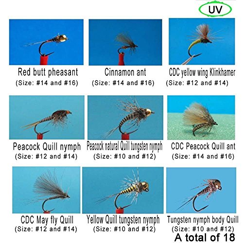 -. Binding : Misc. -. Brand : Riverruns -. Feature : Hand made in Europe by fly fishing specialist with the highest tying standards. / Original Eupheng Plus special designed competition hooks. / UV materials and nature feathers are from Europe. / Full spectrum of UV florescence makes them deadly attracting, fish men proved. / Each of flies the two size, a total of 18. -. IsAutographed : 0 -. IsMemorabilia : 0 -. Label : Riverruns -. Manufacturer : Riverruns -. ProductGroup : Sports -. ProductTypeName : SPORTING_GOODS -. Publisher : Riverruns -. Studio : Riverruns -. Title : Riverruns 18 Competition Flies Trout UV Flies Nymph Flies Fly Fishing Flies New