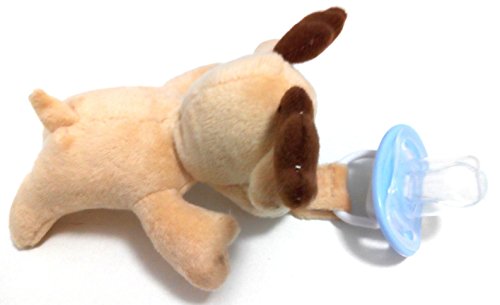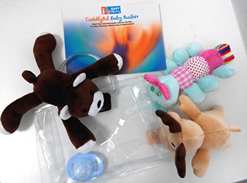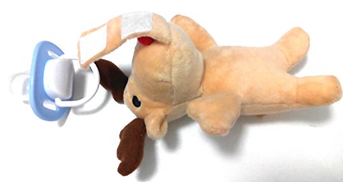 - Feature : ORTHODONTIC SLANTED MEDICAL GRADE SILICONE PACIFIER. Non-toxic silicone pacifier perfect for allergy sufferers: odourless, latex free, BPA, PVC and Phthalate Free. It comes with a PROTECTIVE COVER TO KEEP THE GERMS AWAY while not in use. / SOOTHING FOR BABY & TODDLER UP TO 36 MONTHS. ATTACH your baby's FAVORITE PACIFIER OR TEETHER to meet BABY'S DEVELOPMENT NEEDS. It can be used with a wide range of dummies with a loop (such as NUK, Philips Avent, The First Years GumDrop, Tommee Tippee, JollyPop, Dr Brown's) and teethers with a loop (like the Razbaby teether). (Some pacifiers such as MAM & Munchkin may require an adapter which is readily available from other sellers on Amazon). / DETACH PACIFIER HOLDER for EASY CLEANING, STERILZING & REPLACEMENT. 100% Satisfaction Guarantee! / PERFECT BABY SHOWER GIFT. Pacifier & plush toy pacifier holder - 2 FOR THE PRICE OF 1 - come in a transparent SELF-SEALED PLASTIC BAG to make for a great addition to baby baskets. / LIGHT WEIGHT COTTON TOY (2.4oz, 8"x2"x6") TO DEVELOP YOUR BABY'S SENSES. Ultra soft animal pacifiers holders make it easy for baby to grasp, hold & manipulate the pacifier. The different textures and patterns (all soft) are perfect for the development of baby's senses.