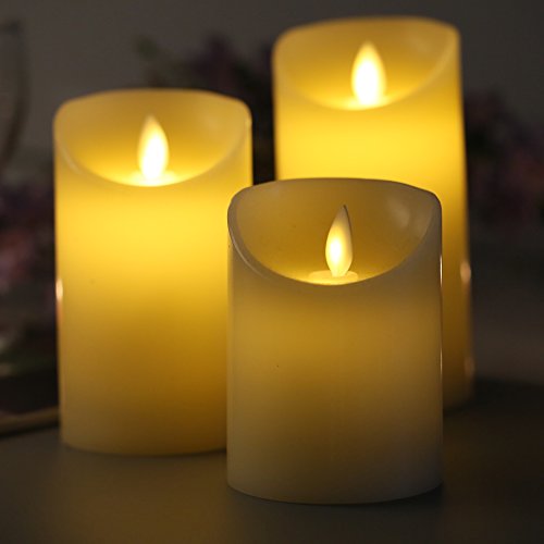 MOVING WICK CANDLES : SET OF 3 Premium indoor pillar Illumi Candles - Height: 4", 5", 6" ; Diameter: 3" .Without Timer and Remote Control .