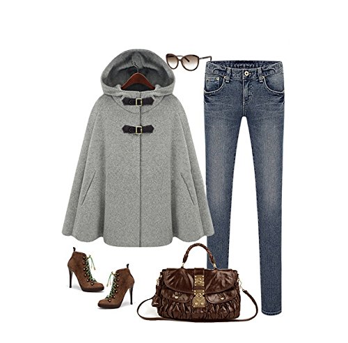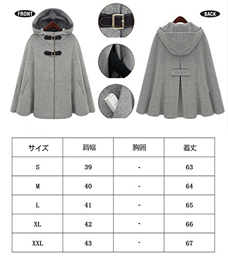 -. Title : AIKOSHA レディース コート アウター ポンチョ ケープ フード付き カジュアル ウール ゆったり