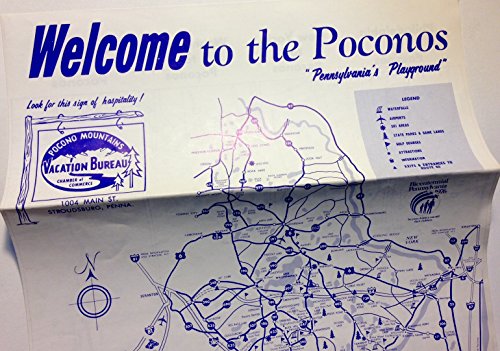 Vintage Original 1975 Fold-Out Road Map "Welcome to the Poconos" Pennsylvania's Playground