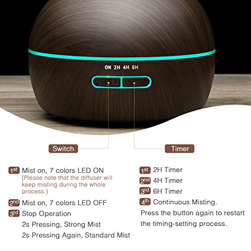 Grosse Kapazitat & super Ausgang: Dieser Aromatherapie Oldiffusor kann bis zu 300ml Wasser halten und standigen Ausgang fur 7 bis 9 Stunden unterstutzen. Bei diesem 300ml Ol Diffusor geniessen Sie eine 45 Tage Geld-zuruck Garantie und eine 12 monatige Sorgenfrei-Garantie.
