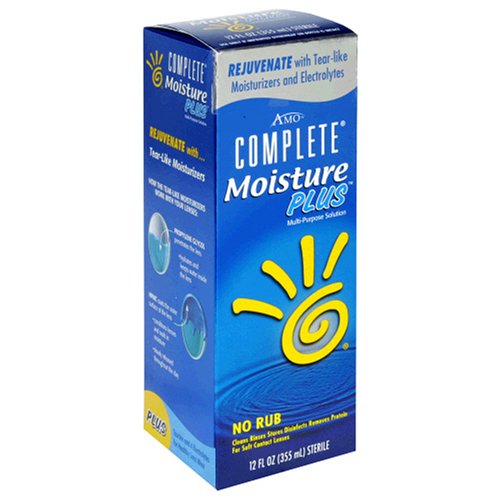 ReleaseDate : 2006-11-15 Studio : Complete Publisher : Complete Binding : Health and Beauty Product Description Rejuvenate with tear-like moisturizers and electrolytes. Cleans, rinses, stores, disinfects, removes protein for soft contact lenses. The optical spa in a bottle. Treat yourself to a multi-purpose solution with Taurine, 4 electrolytes and long-lasting moisturizers that rejuvenate and refresh your contact lenses throughout the day. 8 of 10 Lens wearers prefer Complete MoisturePlus. Rated better at keeping eyes comfortable than previously used multi-purpose solutions. How the Tear-Like Moisturizers Work with Your Lenses: Propylene Glycol - Penetrates the lens; Hydrates and keeps water inside the lens. HPMC - Coats the outer surface of the lens; Conditions lenses and seals in moisture; Slowly released throughout the day. Taurine and 4 electrolytes for healthy lens wear. Made in Spain. 0