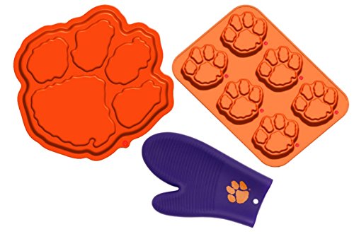 - Clemson Baking Bundle includes (1) Paw Print Cake Mold, (1) 6 Mold Paw Print Muffin Pan, (1) Oven Mitt/Grilling Glove