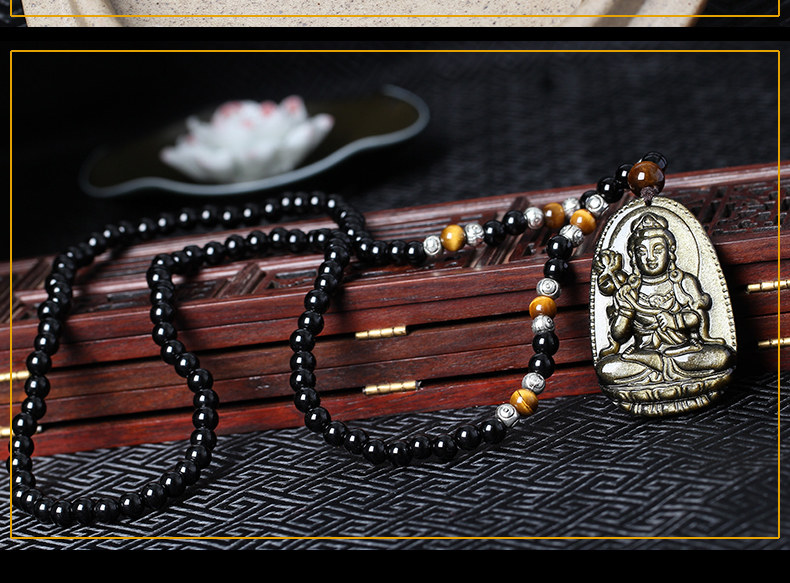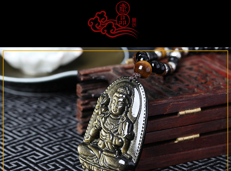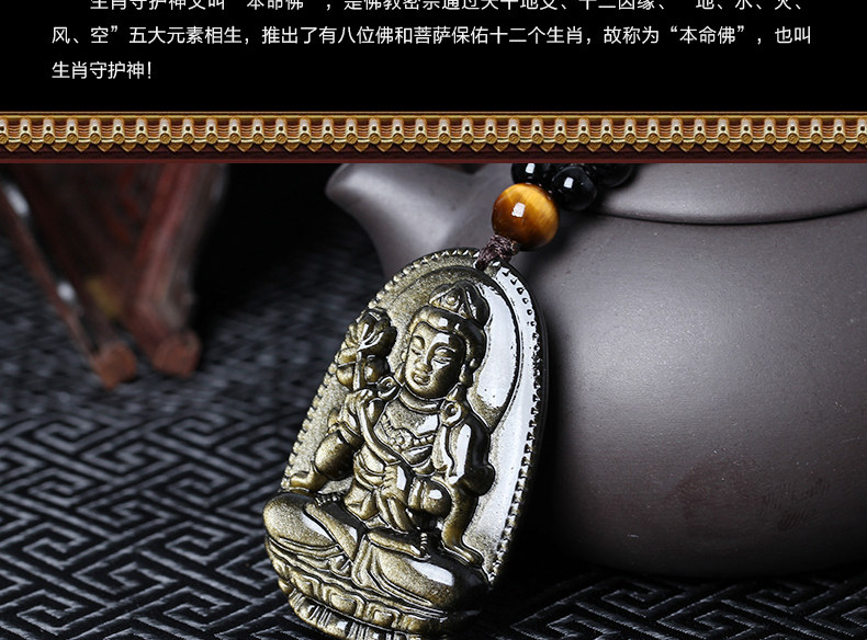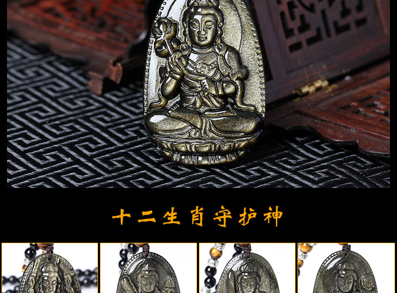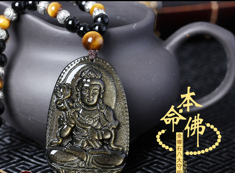 开光天然金曜石大势至菩萨十二生肖属马本命佛守护神吊坠