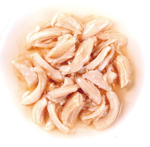 原材料:鶏肉(ささみ)、チキンエキス、増粘剤(加工でん粉)、増粘多糖類、ビタミンE、紅麹色素、緑茶エキス、カロテノイド色素