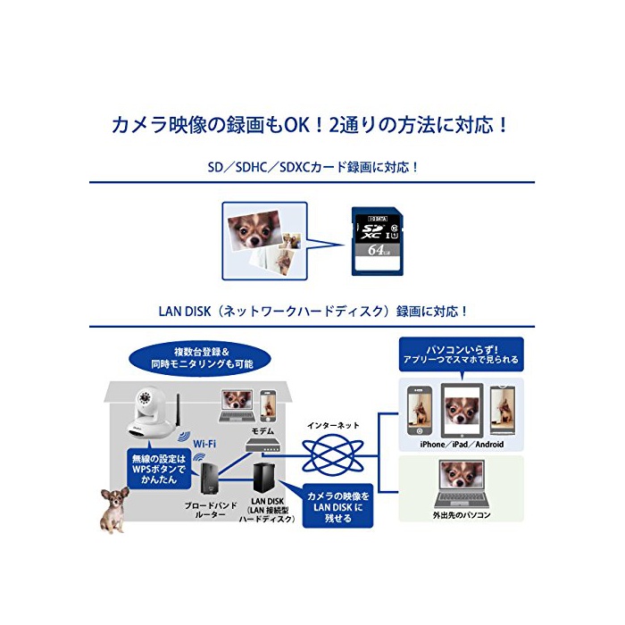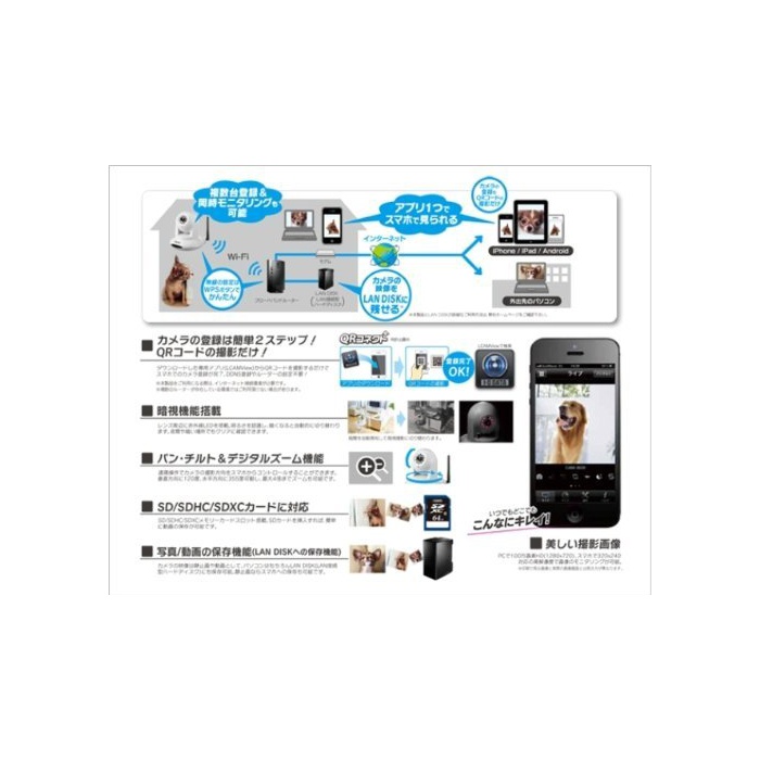 아이O데이터 I-O DATA 네트워크 카메라 《스마호》 애완동물 아이견 지킴 수태도/암시/SD카드 녹화 TS-WPTCAM